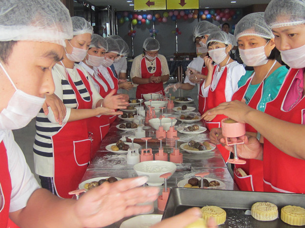 走進(jìn)世博大廈服務(wù)中心,鮮花隨處可見,華美的裝修設(shè)計使人心曠神怡,現(xiàn)場充滿了濃郁的節(jié)日氛圍。大家熱情高漲、十分投入,和面、搟皮,包餡,然后刷上蛋液,撒上芝麻,最后烘烤出爐。員工們邊動手制作月餅邊盡情享用自己的“完美作品”,并拍照留念,記錄下了許多歡樂的瞬間。而現(xiàn)場專業(yè)的月餅師傅則耐心地傳授制作月餅的要領(lǐng),聽得大伙頻頻點頭。另外,除了可以親手制作月餅,還可現(xiàn)場烘焙,讓員工們可現(xiàn)場品嘗至自己制作的月餅,活動現(xiàn)場處處洋溢著溫馨和美的氣氛……